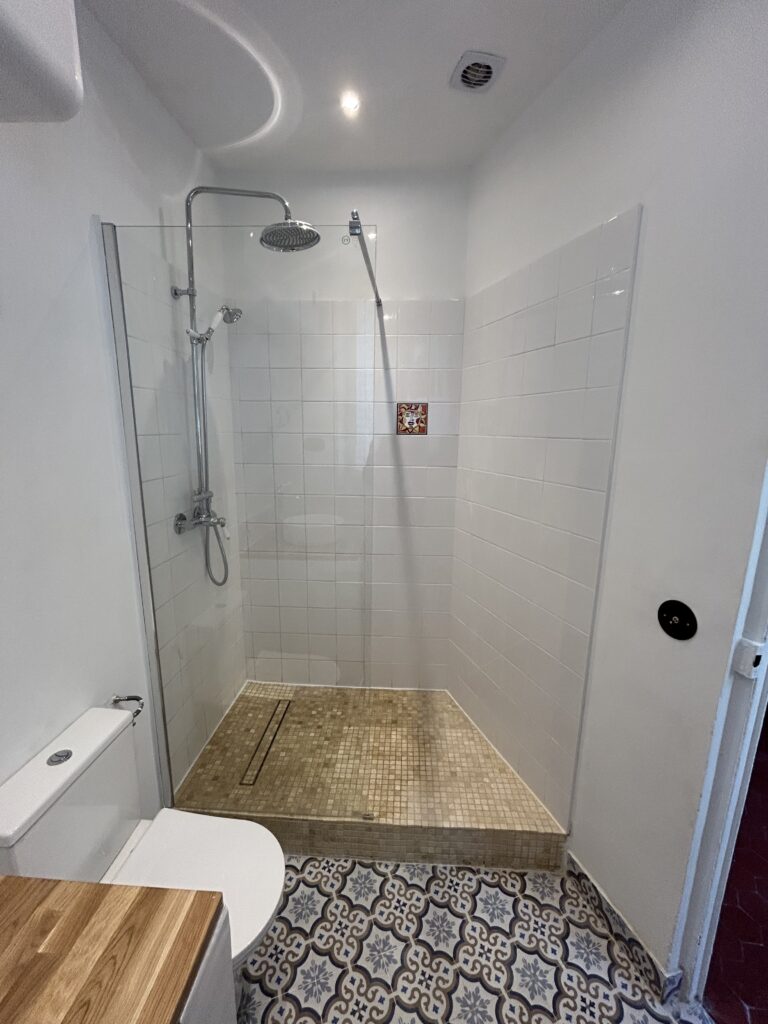 Dans cet appartement marseillais, l’accent est mis sur un style provençal revisité, chaleureux et naturel, mettant en valeur les teintes douces et les matériaux authentiques. Le sol dans la SDB est entièrement revu : après nettoyage du support, le sol en tomettes dans les pièces de vie tandis que les plinthes en bois assurent une finition soignée. La réfection de la SDB est également une priorité avec la pose de nouveaux sanitaires, la remise en étanchéité et la création d’une douche à l’italienne moderne. Les travaux de plomberie permettent de repartir sur une installation fiable et durable.